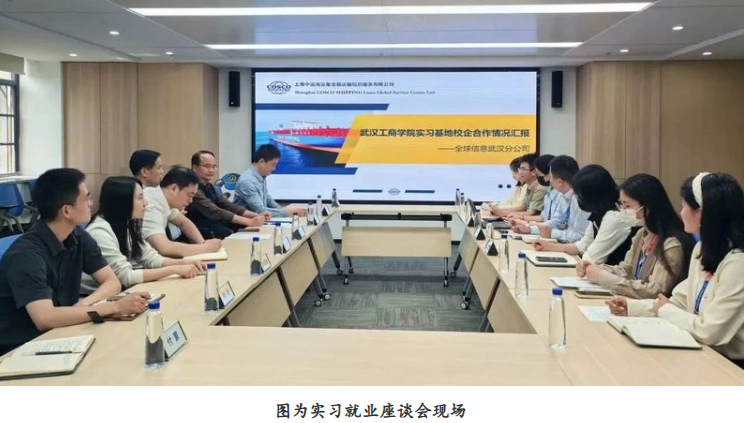 2025年4月14日下午,pg电子官方网站副校长赵北平,就业创业指导中心主任金学武,教务部副部长周本爽,物流学院常务副院长王猛、院长助理张龙及教师代表组成的实习工作考察组赴中远海运集装箱运输信息服务有限公司,与武汉分公司副总经理李鹏、综合部经理程亚丽、人事专员李慧及校企共育学生代表座谈交流,专题研讨实习就业工作。
