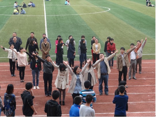 “以前运动会开幕式,就是很简单的走过主席台,今年我们就换一种方式,更有活力,让学生们也来一睹老师的风采”。工学院的陈涛老师说,平日里学生们只看到了他们严谨治学的一面,想用这样一种方式告诉学生们,做学问并不是闭门造车,其实老师也很青春向上。