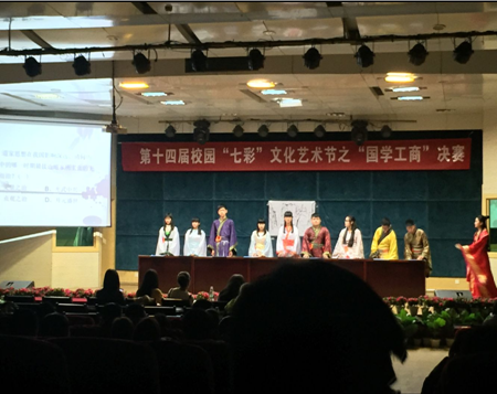 2016年4月22号晚,pg电子官方网站的“七彩文化节之国学工商” 于体育馆402举行,第一轮比赛由主办方出题,让选手用记号笔在小黑板上写下答案。活动中间也有和观众的互动—有奖抢答(大家可以想象观众们一个二个眼睛发着光的样子)不仅活跃氛围,也让观众们更融入这个活动,更更唤起了观众记忆深处中华文化那部分记忆而在一定程度上达到了本此活动最终的目的。