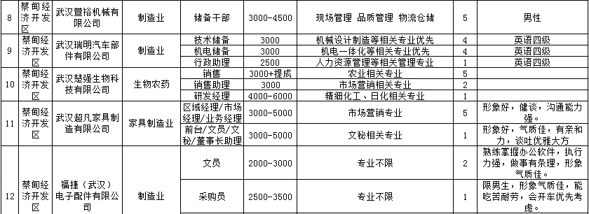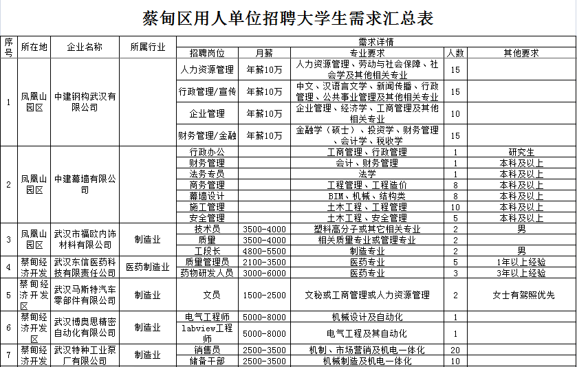 为响应市委、市政府号召,深入实施“百万大学生留汉创业就业计划”,蔡甸区招才局拟组织开展蔡甸区“招才引智”招聘进校园活动,现公布活动安排如下: