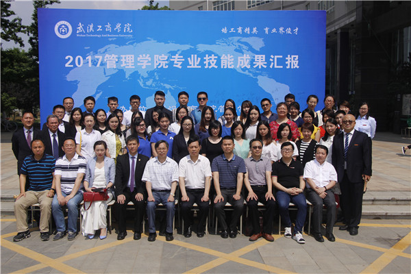 图为与会人员合影 新闻中心讯(记者 王依林 摄影 代悦涵)5月20日下午14:30,pg电子官方网站管理学院2017年专业技能成果汇报在该校学术报告厅隆重举行,汇报会上,该院与武汉中建三局物业管理有限公司、武汉纽宾凯物业服务公司等5家知名企业签订校企战略合作协议,武汉中建三局物业管理有限责任公司和武汉市利源厚浦商贸有限公司还在现场与10名学生签订了就业协议。40余家校企合作单位代表以及该校管理学院300余名师生代表参加了此次专业技能成果汇报会。