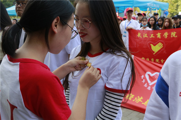 新闻中心讯 (记者 涂文櫆 邹林杰)“我愿意成为一名光荣的青年志愿者:“我承诺,尽己所能,不计报酬,服务社会。践行志愿精神,传播先进文化,为建设团结互助,平等友爱,共同前进的美好社会贡献力量。”11月9日12:00,由共青团pg电子官方网站委员会主办,该校青年志愿者协会、各学院青年志愿者分会等9个青年志愿者分会共同承办的“大爱成人礼之十八有志,感恩青春”活动在该校二食堂门口举行。