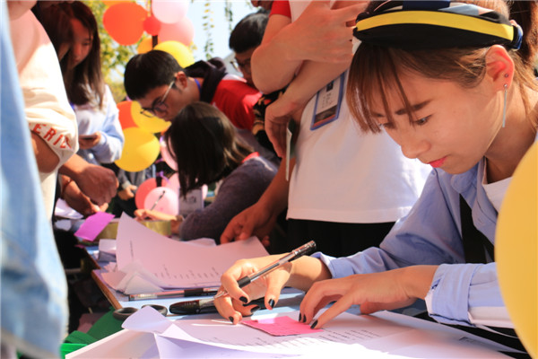 活动一开始,便吸引了大批学生参与互动,现场十分热闹。经济与商务外语学院青年志愿者分会“大爱成人礼之唇舌大作战”30秒读绕口令的游戏,凭借幽默俏皮的内容和丰厚的奖品获得了很多学生的青睐。信息工程学院青年志愿者分会在宣传展板上提写歌词“岁月是一场有去无回的旅行,好的坏的都是风景”呼吁同学们要珍惜青春时光,树立远大志向,同时通过发放“扬洒青春”便利贴,传递“成长、成熟、承担”的含义。艺术与设计学院青年志愿者分会在现场开展了“同舟共济”、“ 抱团打天下”和“就是不听指挥”3个游戏让参与者懂得了团结合作的重要性,同时明白了在抱团合作时,还要学会独处。