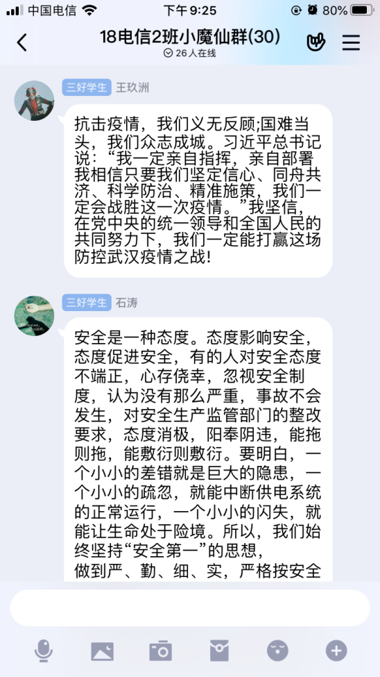 随着时代的发展,新形势下不仅呼唤新的发展观、改革观,还需要新的安全观。这几个月以来,我们国家以武汉为首的新冠病毒很快的扩散开来,俗语有云:“在岗一分钟,就要坚持60秒”,春节本该是普天同庆全家团圆的日子,可是疫情却以迅雷不及掩耳之势赫然来到我们身边,这是一场没有硝烟的战争,从此刻起,春节已经不再属于我们,生命重于泰山,疫情就是命令,防控就是责任,我们要提高认识,立即行动。作为一个武汉人,这几个多月以来都没有出门,每天关注着确诊人数的趋势,那数据更是牵动了心,越是这个时候越不能掉以轻心。同样作为一个大学生,在家中要注意自己的个人防护,同时监督家人,戴口罩,勤洗手,不去往人多的地方,不吃野生动物,肉类煮熟了再吃。