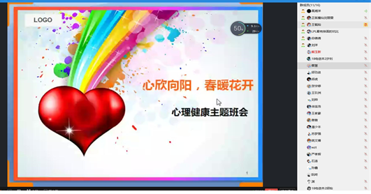 本次主题班会以一个全新方式开展,引导同学感受自己的内心世界,增强心理健康意识,用积极乐观的态度来面对疫情。同时,还呼吁同学们要重视心理健康,在家多锻炼身体也多多和家长朋友以及辅导员进行交流沟通。