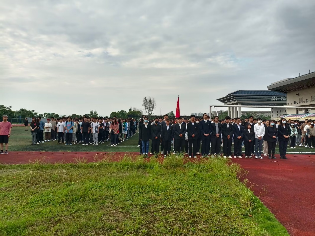 2023年5月8日星期一清晨人工智能学院在学校操场举行升旗仪式,所有大一、大二、大三学生和党总支书记以及各年级辅导员老师参加了本次升旗仪式。