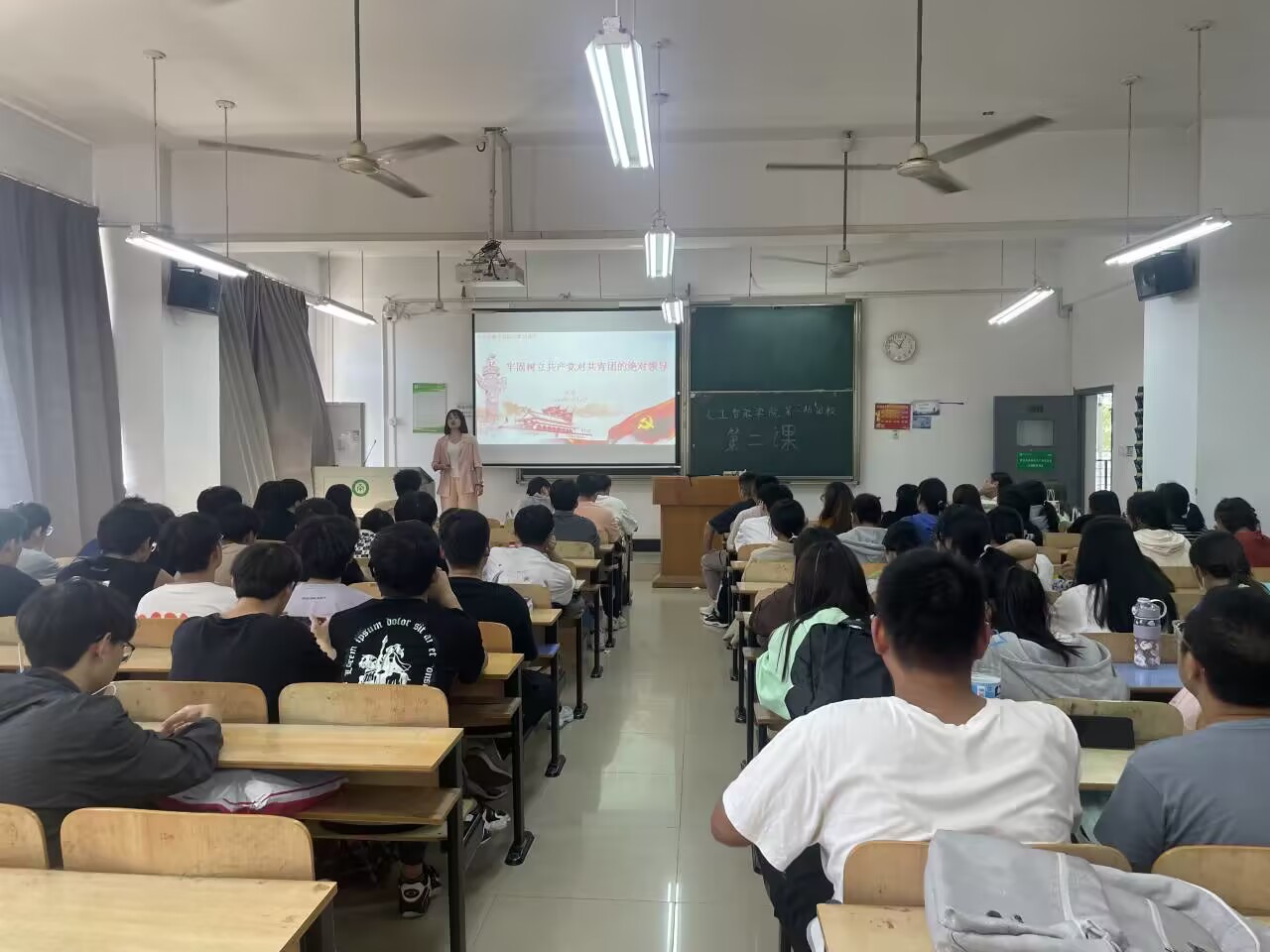 为充分发挥团课在青年教育中的重要作用,引导入团积极分子知团史、知团情、跟党走,按照人工智能学院分团校第1期入团积极分子培训班授课计划,5月11日中午,在综合楼203教室开展了一场主题为“牢固树立共产党对共青团的绝对领导”的团课教育活动,学院党总支书记吴艳主讲,94名入团积极分子参加了此次团课。