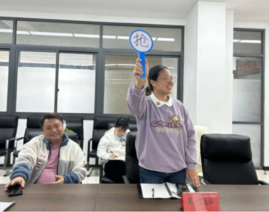 各党支部的教工党员都是有备而来,比赛现场气氛紧张激烈,精彩纷呈,每位教工党员认真思索、积极、各显风采,将良好的团结协作精神和饱满的热情投入到比赛中,充分展现了自己的学习成果和所在小组的风采。特别是在抢答题环节,各小组你追我赶、奋勇争先。整场比赛教工党员们赛出了风格、赛出了水平,充分展现了党员干部深厚的政治理论功底和激情昂扬的斗志。