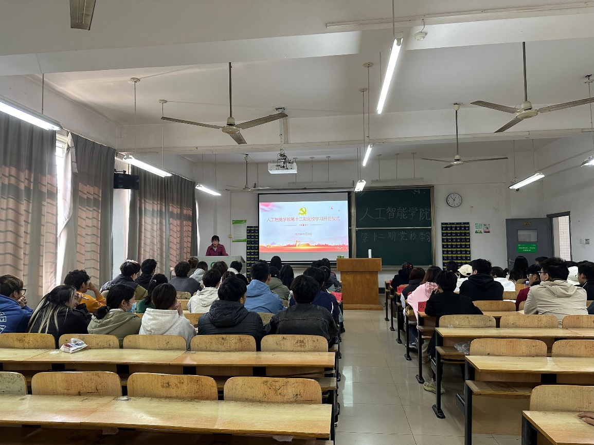 为了提高党员的思想政治素质和党性修养,加强党的建设和发展,引导发展对象、入党积极分子进一步学习贯彻习近平新时代中国特色社会主义思想理论体系, 11月23日中午,人工智能学院第十二期党校学习开班仪式在综合楼205教室举行。本次党校学习迎来了一批新成员,由吴艳书记、吴雅雅老师和刘雨洁老师出席此次活动,本次活动主题围绕两个方面进行展开“二十大要点”和“共产党员的理想信念”。