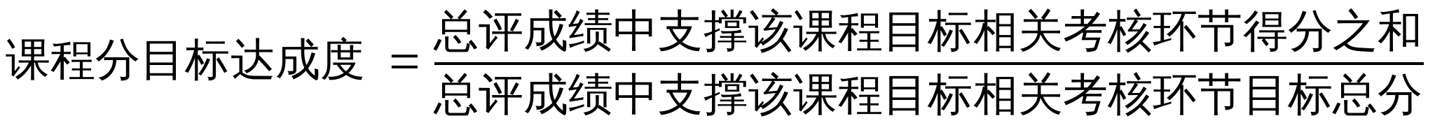 课程分目标达成度,为总评成绩中支撑该课程分目标相关考核环节得分之和与对应的目标总分的比值,其计算公式为:
