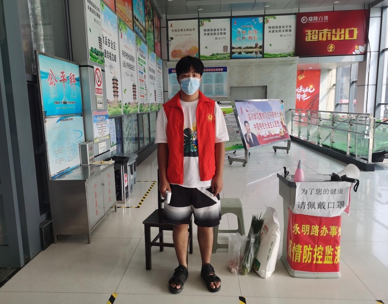 “疫情当前,作为一名大学生,我觉得更有责任和义务站出来守护我们的家园。”2020级电子信息应用技术三班的薛仲祺利用暑假在家时间主动到社区担任志愿者,参加疫情防控工作。