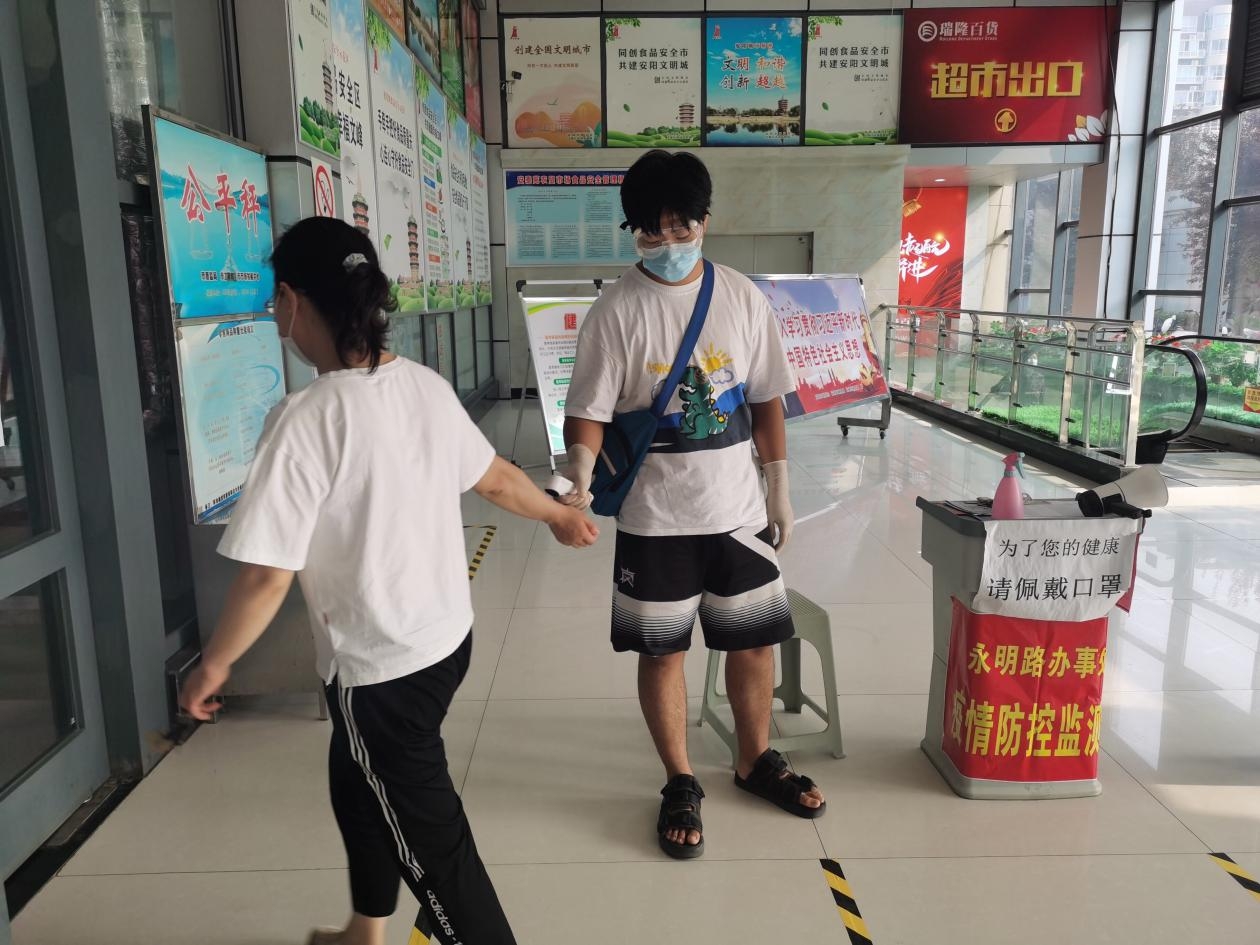 家乡在河南安阳的薛仲奇和居住的社区进行联络,第一时间申请参加疫情防控工作。街道办负责人安排他次日清晨在安泰苑农贸市场集合。8月1日,他如愿成为了一名防疫志愿者。