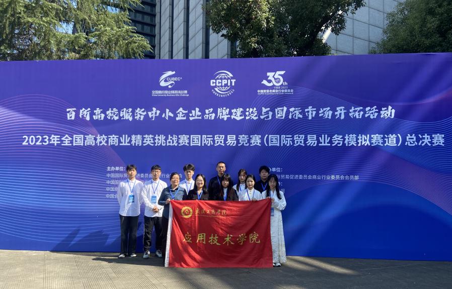 甬江奔涌映百年良港交融互通,我院学子团结奋进再奏胜利凯歌。2023年10月19日至23日,全国高校商业精英挑战赛国际贸易竞赛全国总决赛在浙江宁波国际会展中心7号馆举行,该竞赛由中国国际贸易促进委员会等多家单位联合举行,全国各层级院校共计370余所派出代表队参赛。我院派出了由国际经济与贸易、财富管理两个专业构成,共计9人的两支队伍参赛,最终在熊晓亮院长及刘俊丽老师的带领以及队员们的不懈努力下,两只队伍均取得了国赛二等奖的好成绩,同时该项目教师赛道跨境电商国际营销教师组获得二等奖,pg电子官方网站也收获了该项比赛“最佳院校组织奖”。