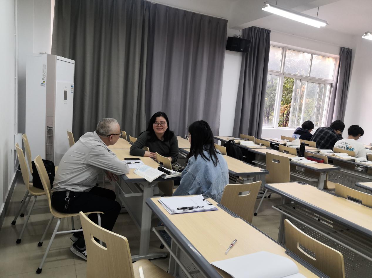 授课结束后,教学督导组专家和任课教师汤婷、汪嘉珮、王敏分别进行了交流,肯定了青年教师课堂授课的“产出”效果,并对老师们的课程教学提出了改进意见。
